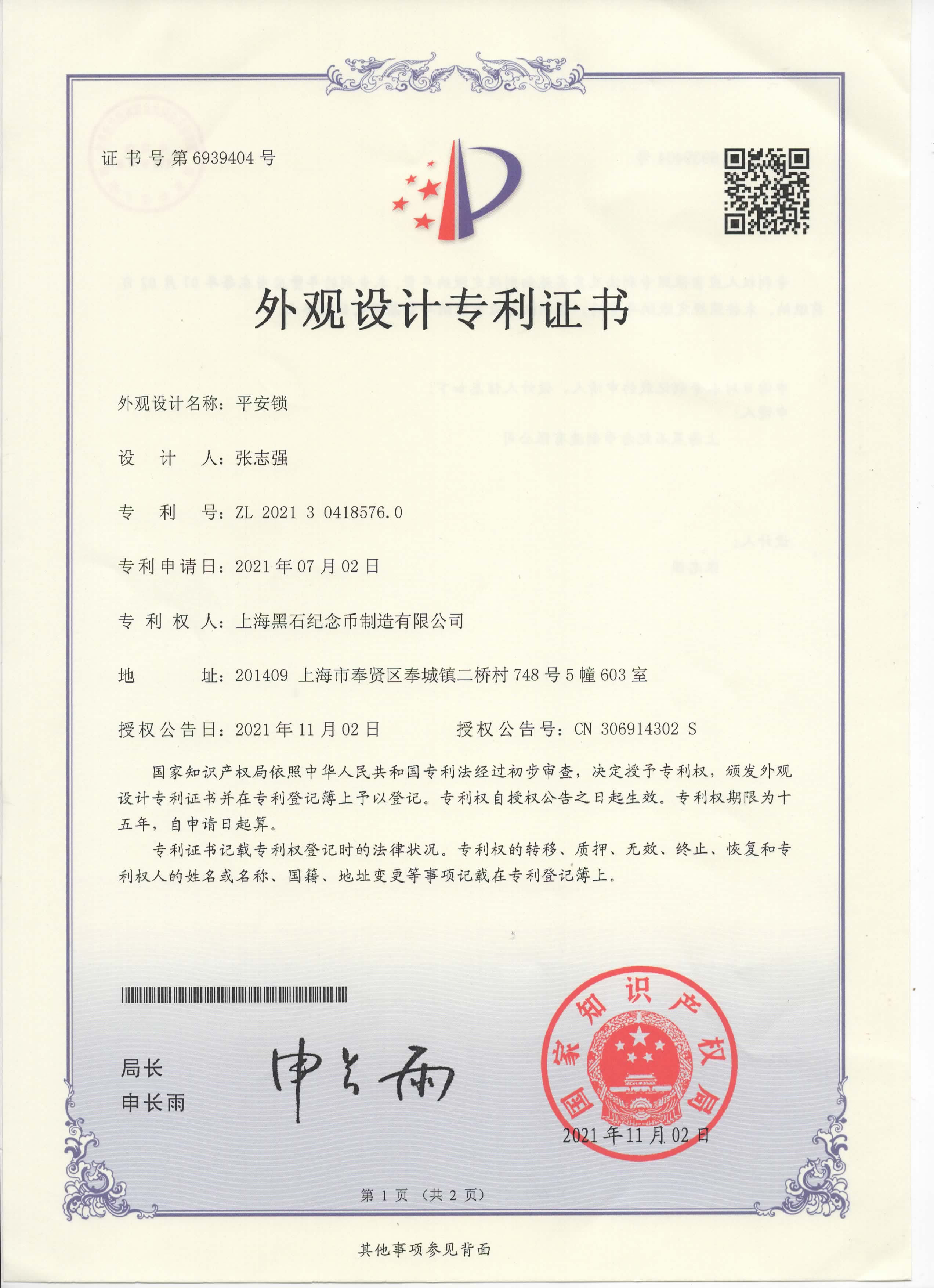 當(dāng)前位置:首頁 / 關(guān)于黑石 / 榮譽(yù)資質(zhì)/證書 / 平安鎖專利